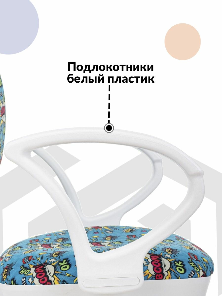 Кресло детское KD-3/WH/ARM голубой бум крестовина пластик белый / Компьютерное кресло для ребенка, школьника, подростка 5 930 ₽