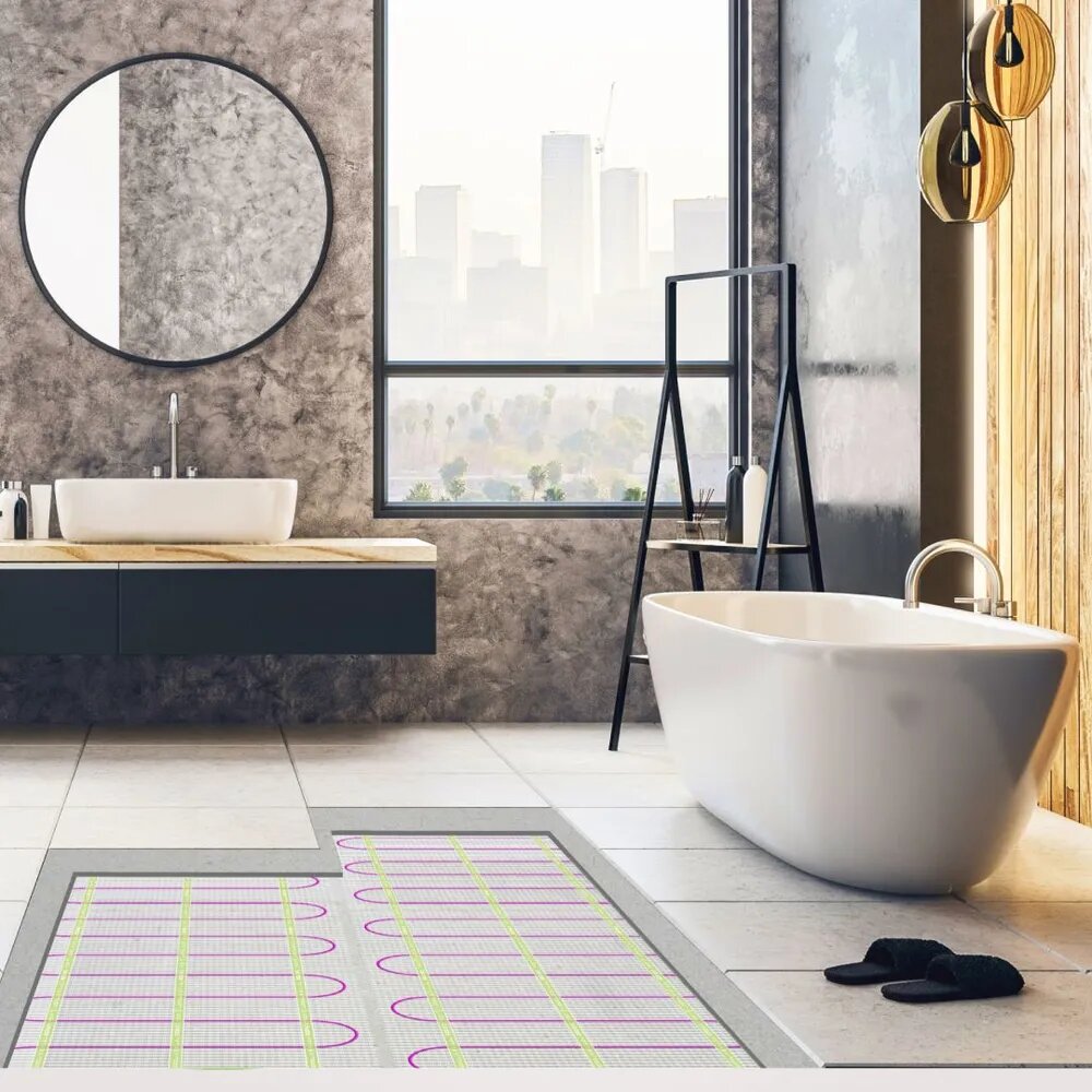 Теплый пол электрический под плитку Ридан TF-150 0,5 м2 нагревательный мат тонкий на самоклеящейся сетке