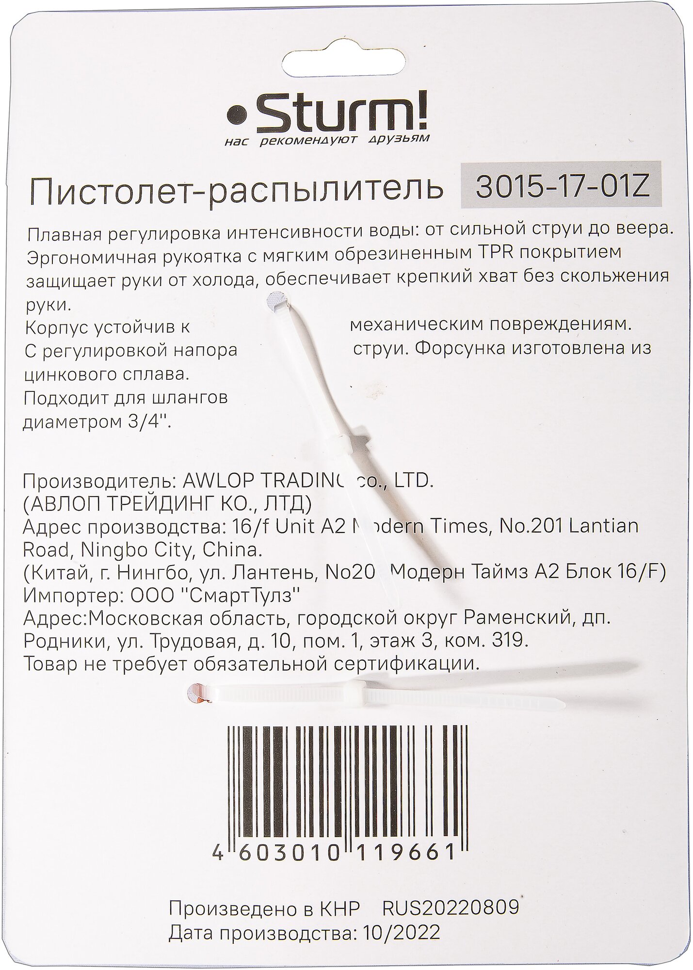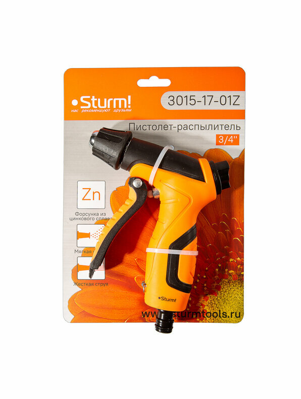 Отзывы на Пистолет - распылитель для полива Sturm! 3015-17-01Z 9 режимов, форсунка цинк, корпус с резиновым покрытием