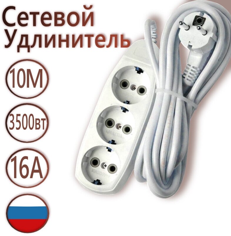 Отзывы на Сетевой удлинитель JETT на 3 розетки / С заземлением / 10 метров
