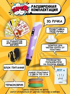 3D Ручка Фиолетовая Набор С Трафаретами и Пластиком Для Творчества Для Детей От 5 До 14 Лет информация: