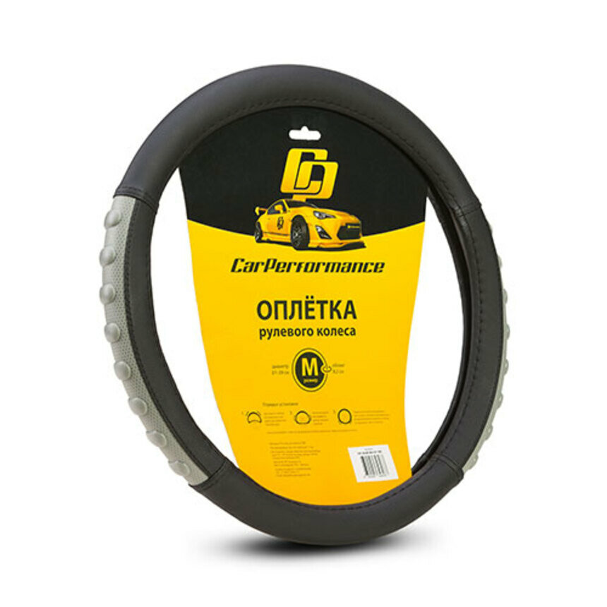 10 цен на Оплетка руля M 37-39 см экокожа две объемные вставки под хват серая CAR PERFOMANCE CP-2040 BK/GY (M)