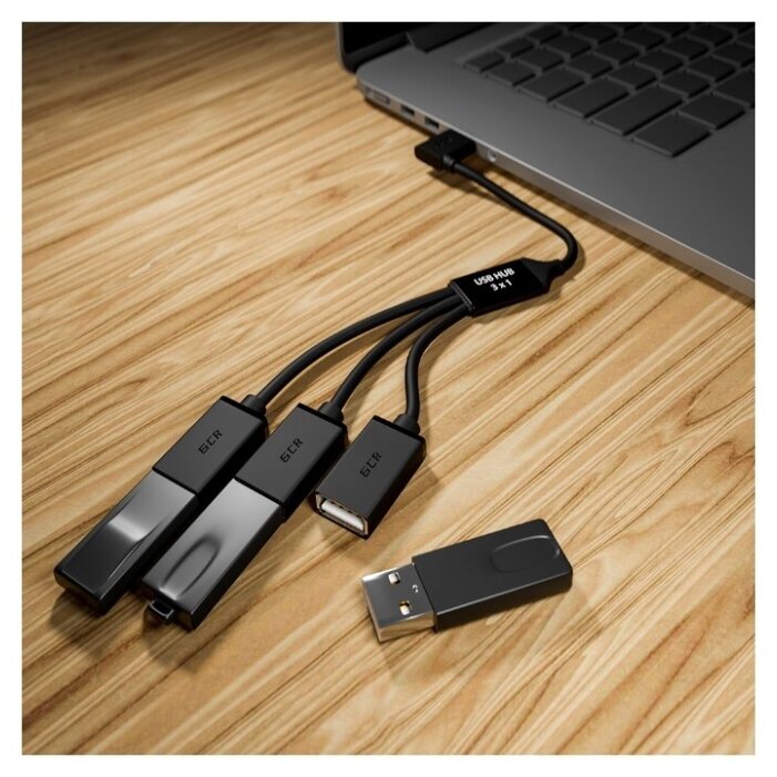 Отзывы на USB Hub GCR разветвитель AM/3xAF на 3 порта 35см гибкий двусторонний черный USB Hub угловой