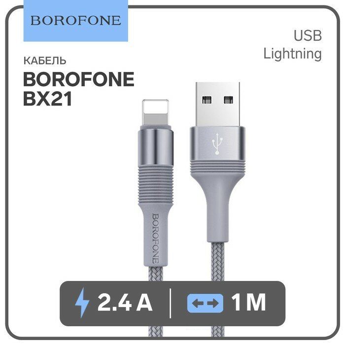 Кабель Borofone Bх21, Lightning - USB, 2.4 А, 1 м, тканевая оплётка, серый информация: