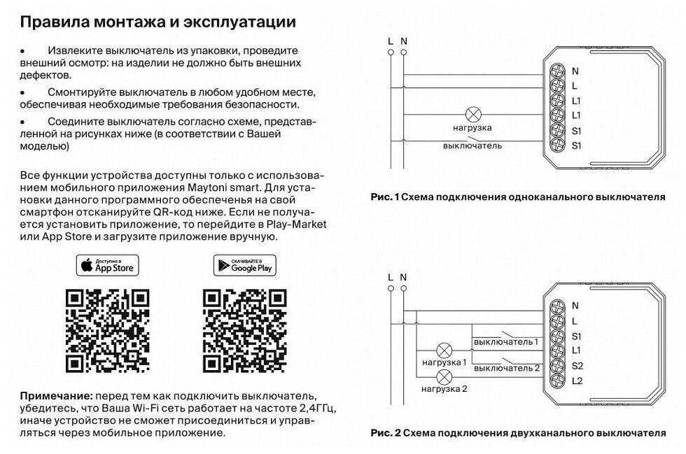Wi-Fi выключатель одноканальный Maytoni Technical Smart home MS001