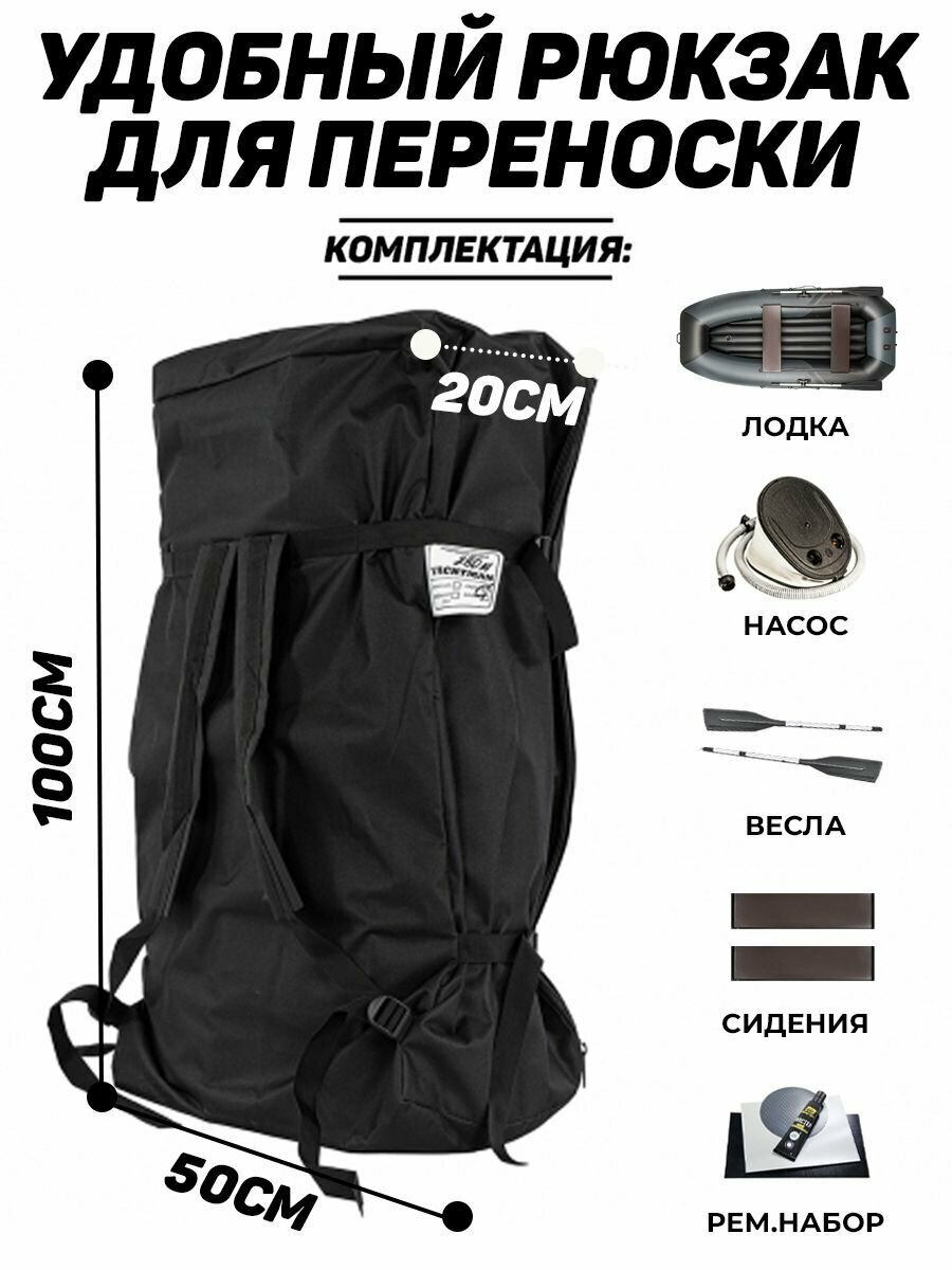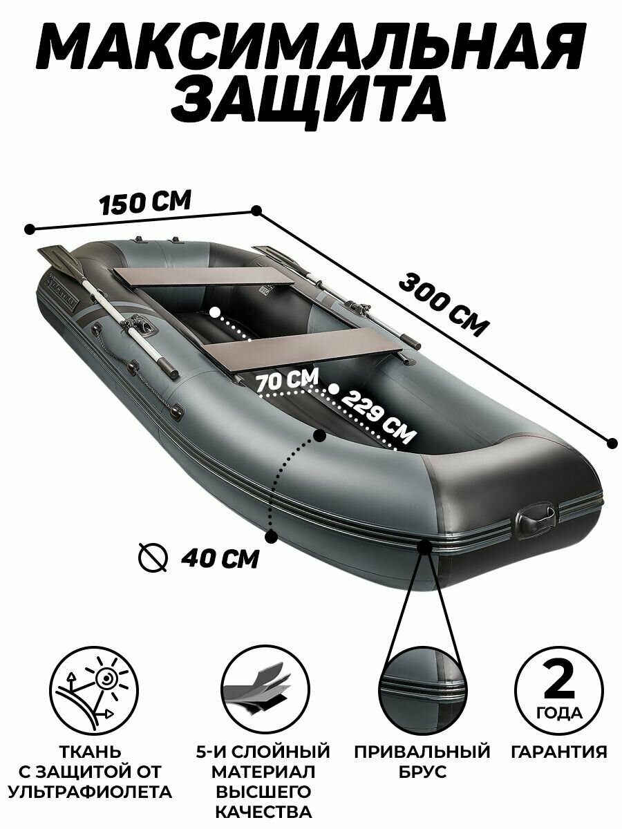 Лодка ПВХ моторно-гребная YACHTMAN 300 МНД, надувное дно, серый;черный информация:
