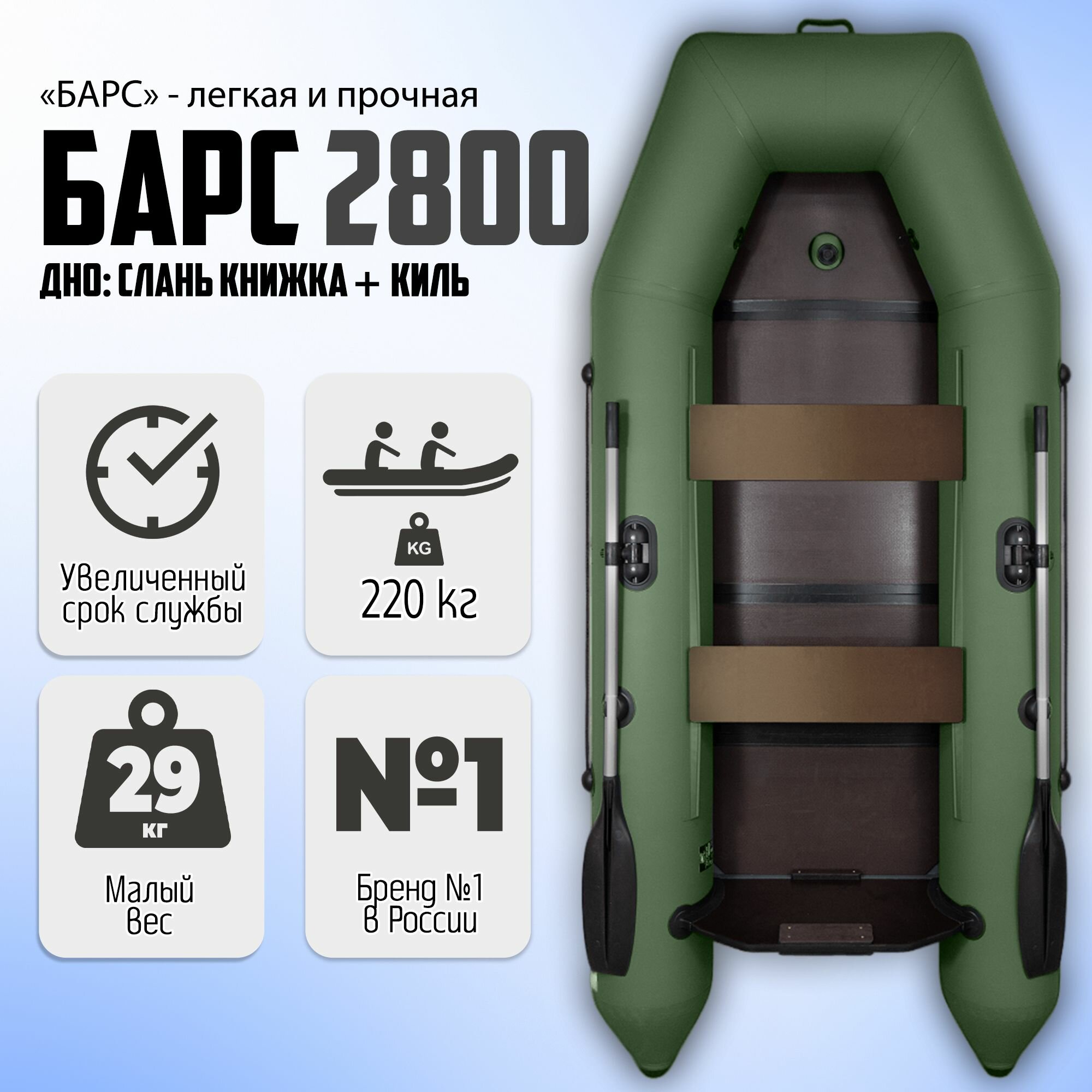 Лодка пвх под мотор Барс 2800 СКК, зеленый информация: