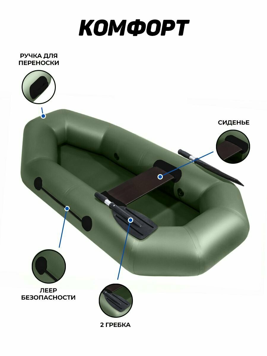 Лодка ПВХ гребная Барс 200, зеленый информация: