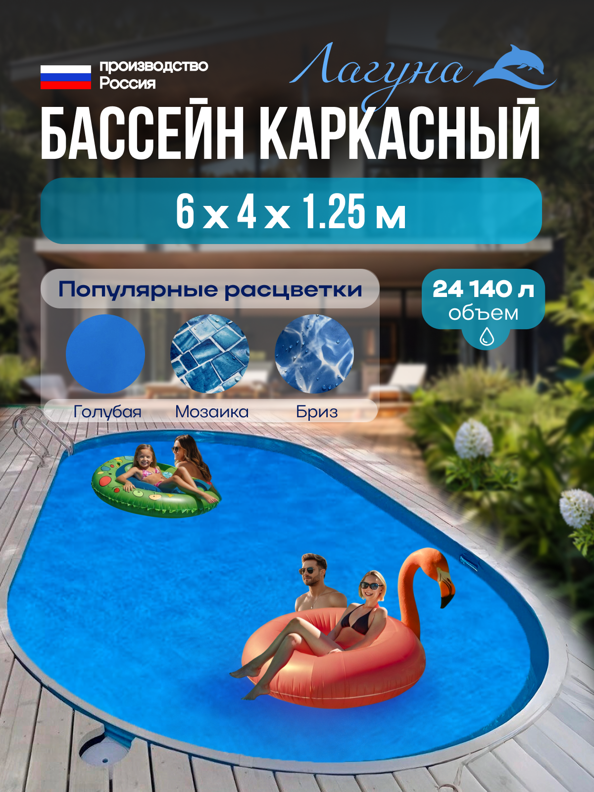 Бассейн каркасный морозоустойчивый овальный "Лагуна" 6 х 3,5 х 1,25 м Платина чаша 0,6 мм 141 500 ₽