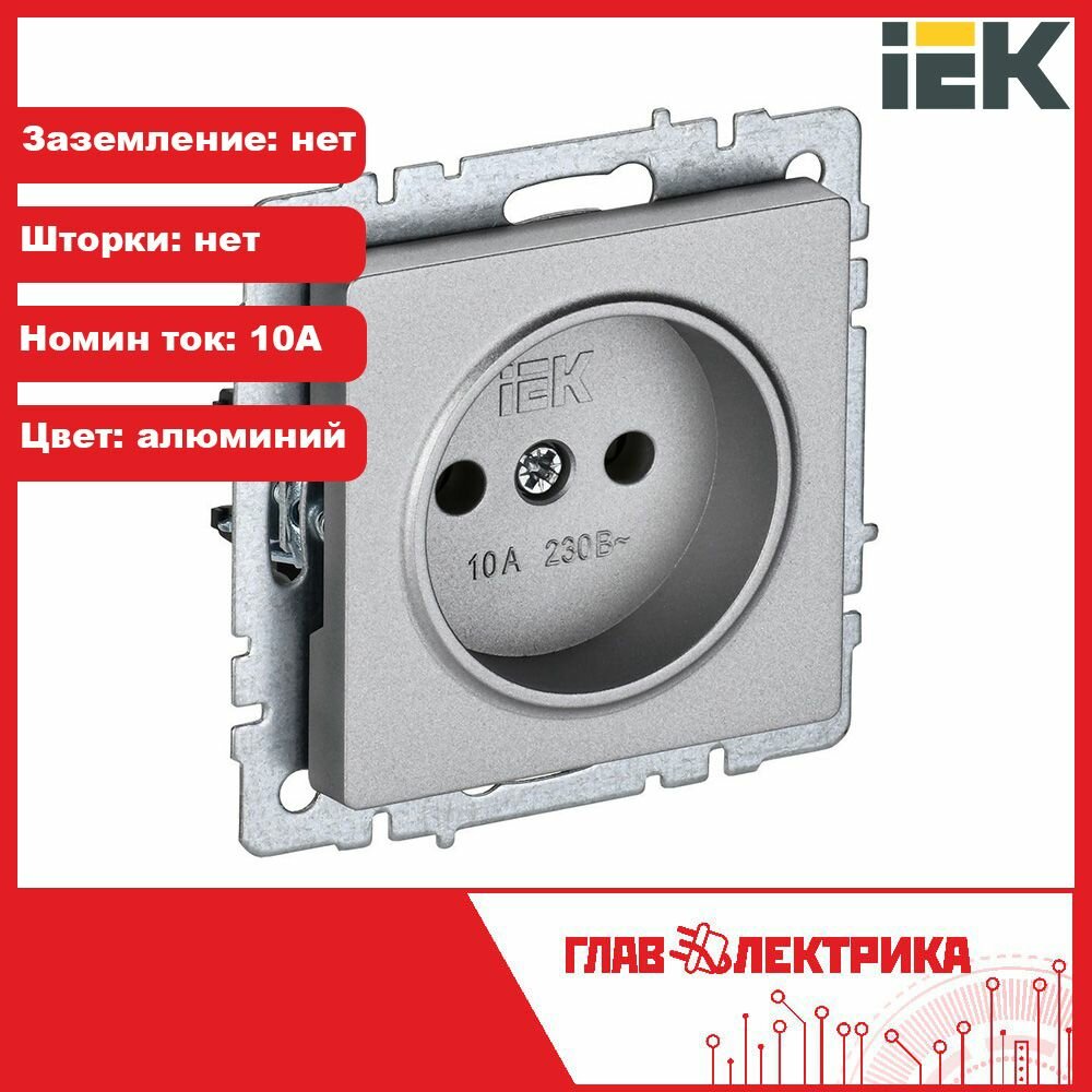 Розетка без заземления без защитных шторок IEK BRITE 10А алюминий(4 шт) 978 ₽