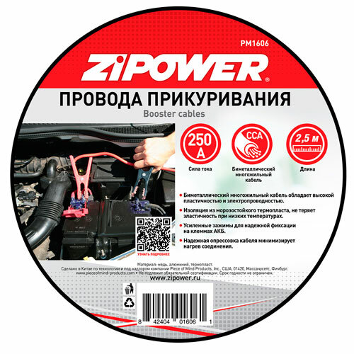Отзывы на ZIPOWER провода прикуривания, 250 А, 2,5 М, 8 ММ2, биметаллические PM1606