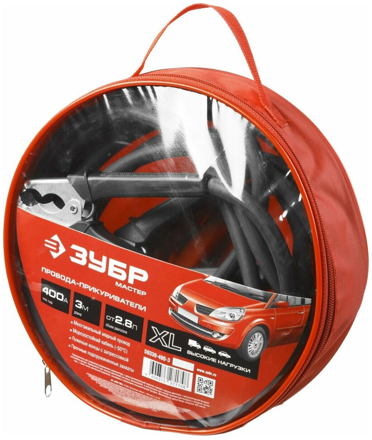 Пусковые провода 400 А, 3 м, морозостойкие, в сумке, ЗУБР