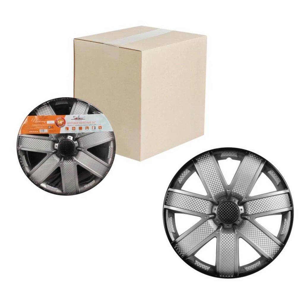 Колпаки колесные 14 Лион, серебристый, карбон, компл, 2 шт, (AWCC-14-01)
