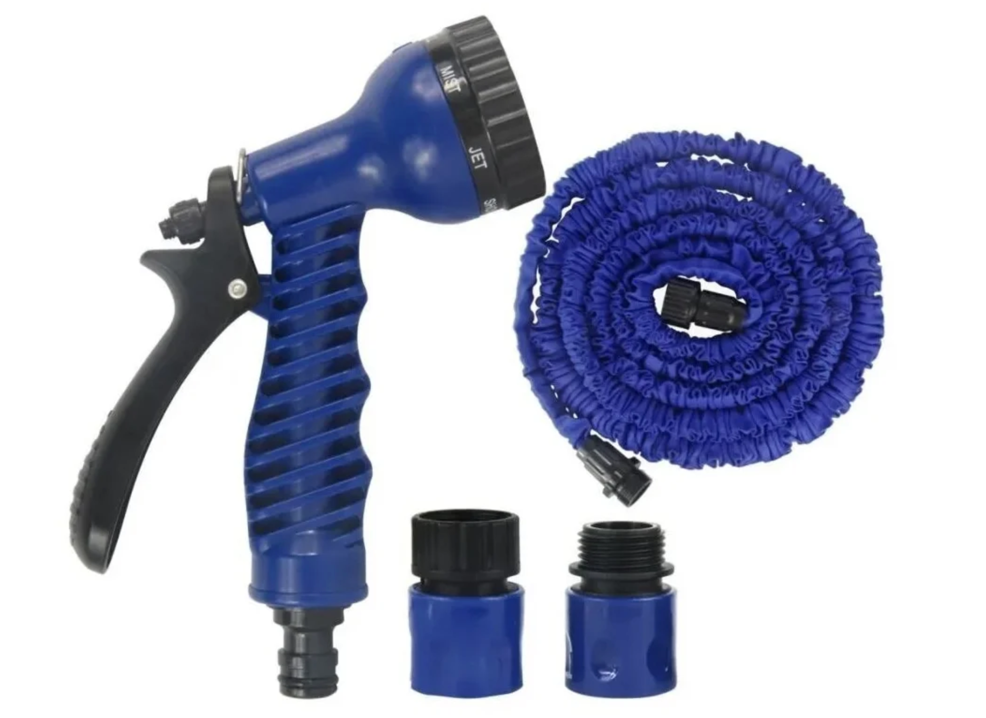 Растягивающийся садовый шланг для полива с насадкой-распылителем Magic Hose (Синий) 7.5 метров