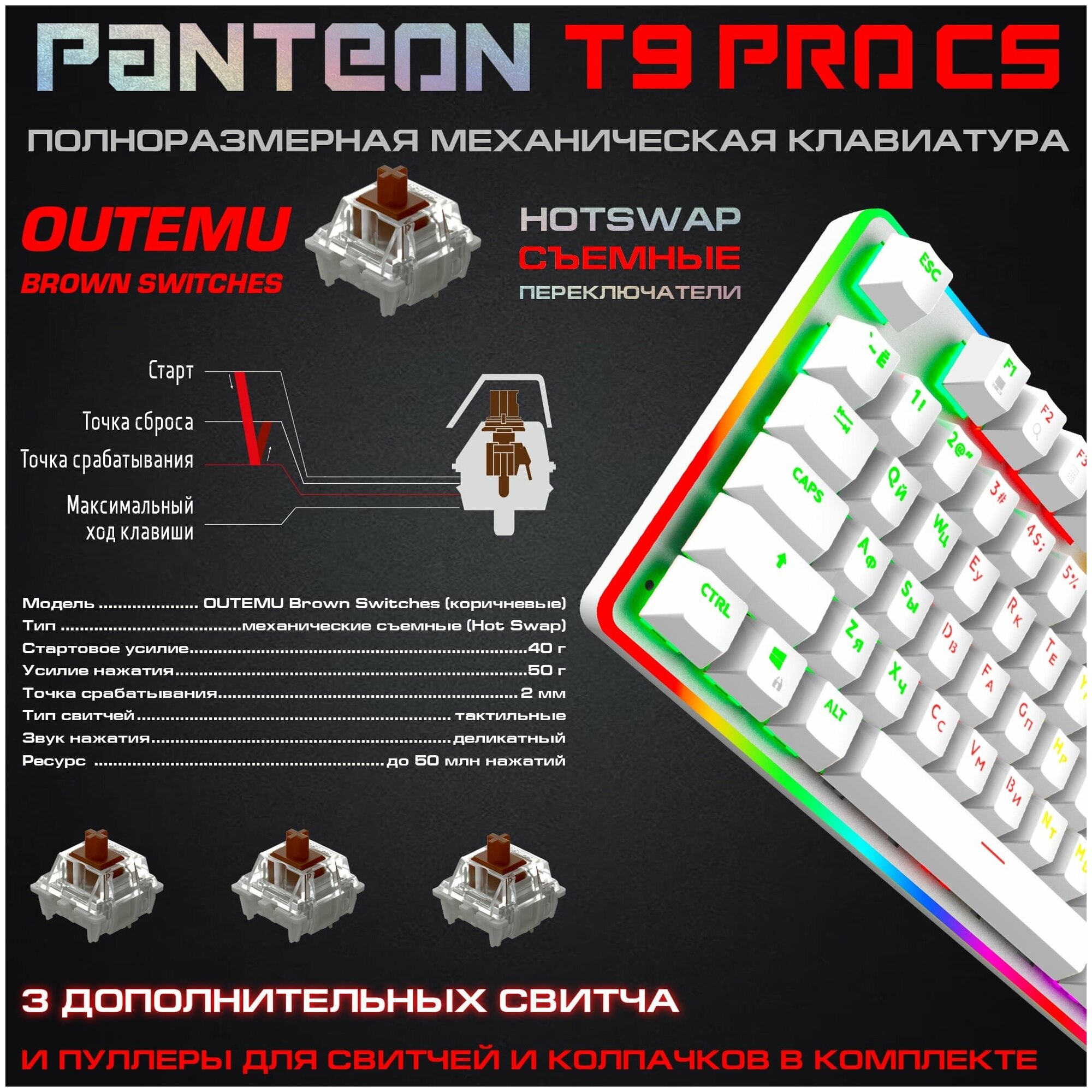 Механическая игровая клавиатура PANTEON T9 PRO CS(RGB LED,OUTEMU Brown, HotSwap,104+4 кл.,USB) белая