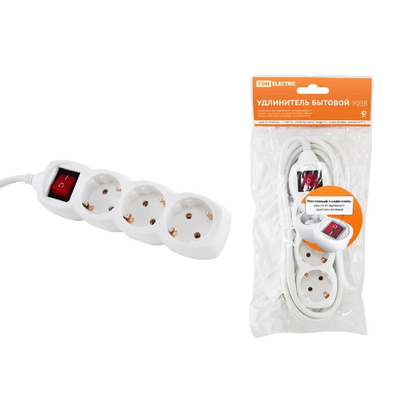 Отзывы на Удлинитель бытовой 3 гн, 3 м, ПВС, 3х1 мм², с/з, 16 А, выкл, 250 В, TDM, У03В, SQ1303-0101