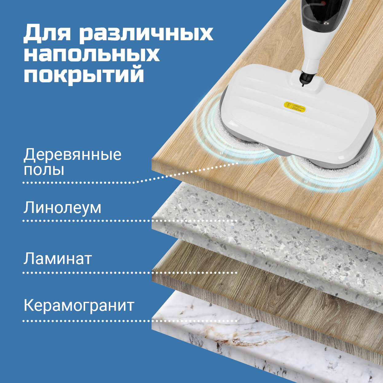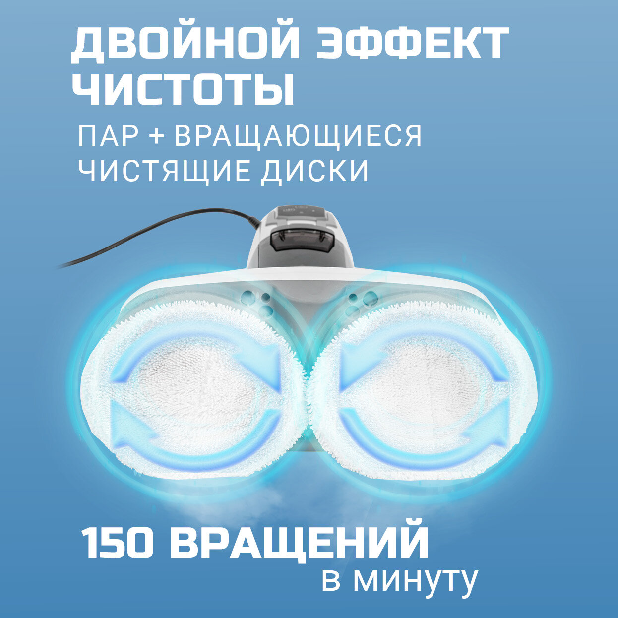 Паровая швабра Windigo WSM-01, 1300 Вт, 350 мл, время нагрева 25 сек, шнур 4 м, бело-голубой