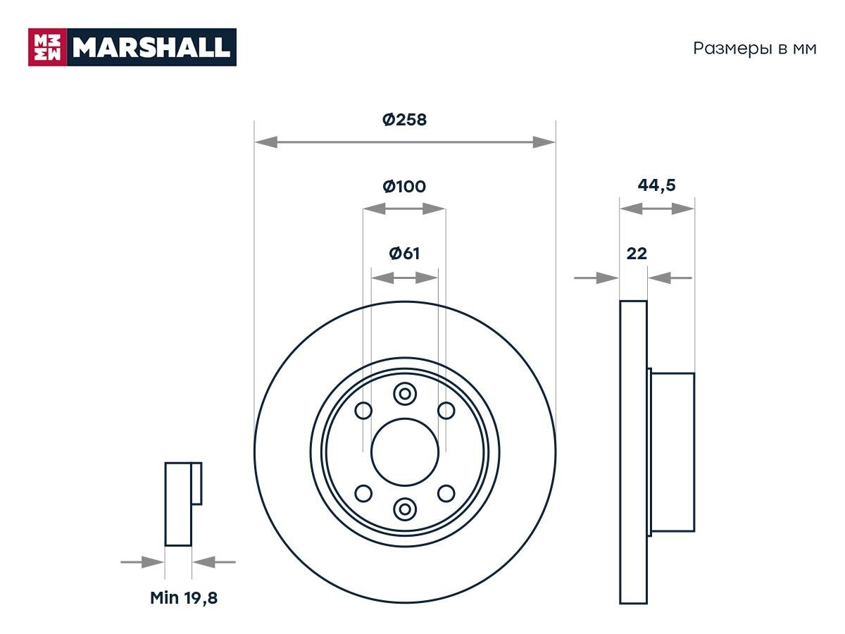Диск тормозной Renault Logan II 13-, Sandero II 14-, Clio 12-16 передний 258 x 22 вент. Marshall MARSHALL M2000505 | цена за 1 шт