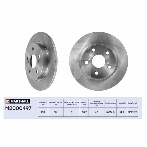 Диск тормозной Toyota Corolla (E150, E180) 06- Auris 06-, задний 270 x 10 Marshall MARSHALL M2000497 | цена за 1 шт