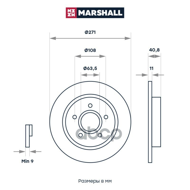 Диск тормозной Ford Focus III 11-, C-Max 10- задний 271 x 11 Marshall MARSHALL M2000475 | цена за 1 шт