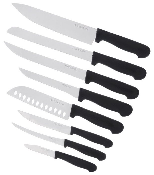 Отзывы на Набор ножей кухонных Mayer&Boch / Майер Энд Бош 20653 с подставкой из древесины, нержавеющая сталь черный, 15 предметов / столовые приборы для кухни