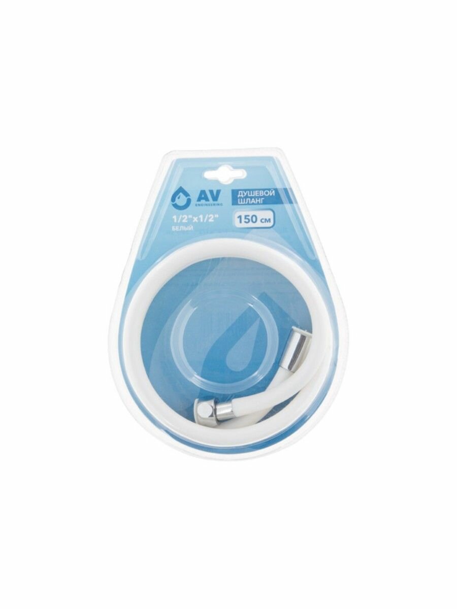Шланг душевой, PVC, 1/2" г-г 150 см, бел, AV Engineering (Гайка цинк) (AVSSS-045)