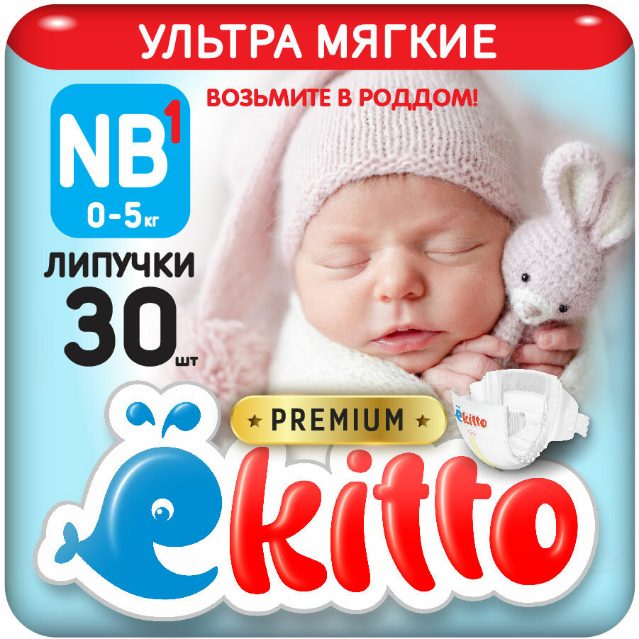 Ekitto Подгузники на липучках (NB) 30 шт 0-5кг