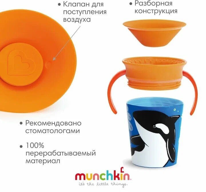Отзывы на Munchkin поильник-непроливайка MIRACLE® 360° ЭКО с ручками Косатка 177мл. 6+
