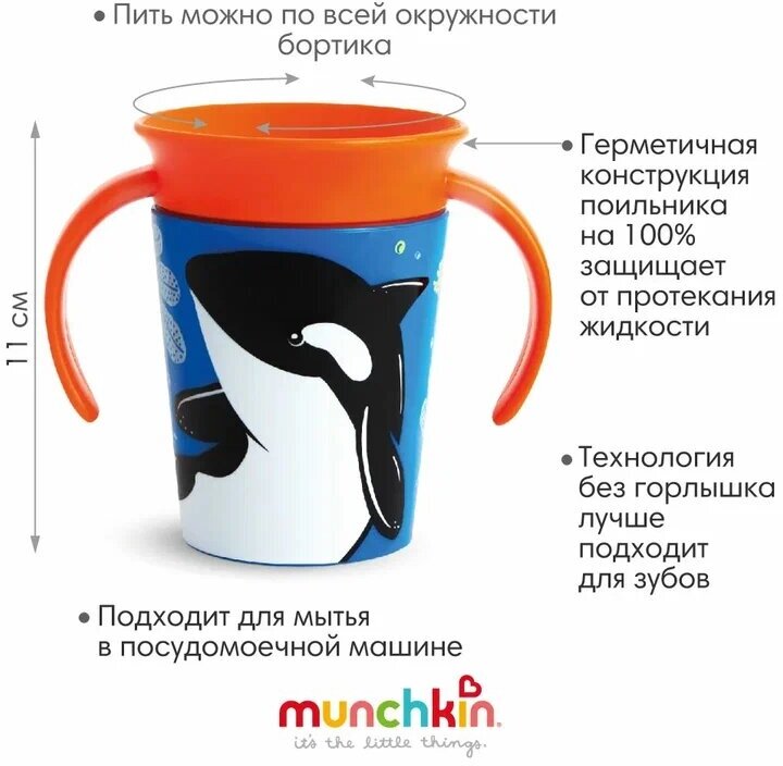 10 цен на Munchkin поильник-непроливайка MIRACLE® 360° ЭКО с ручками Косатка 177мл. 6+