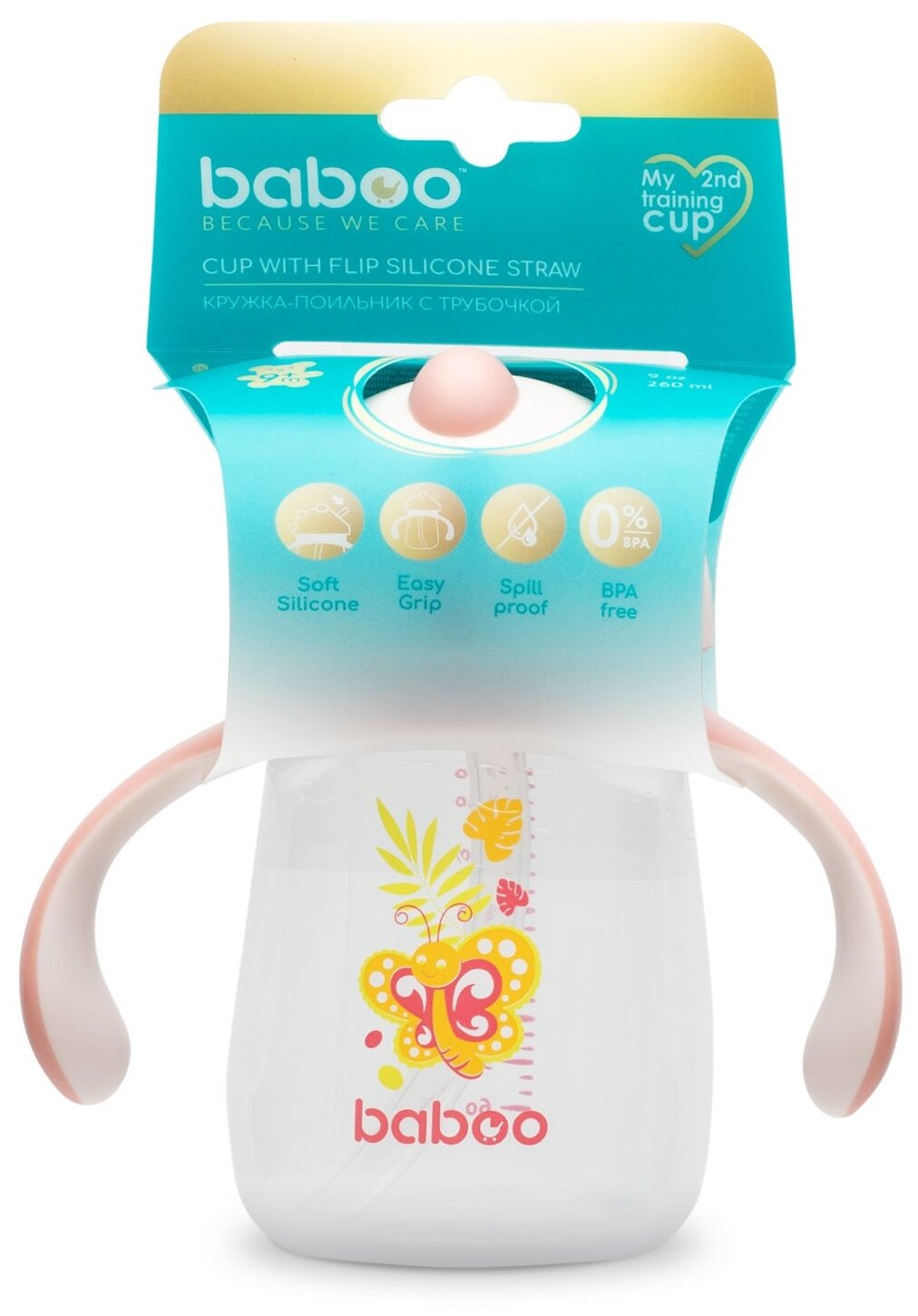 Кружка-поильник с трубочкой 260 мл. роз. Butterfly 9 мес+ BABOO информация: