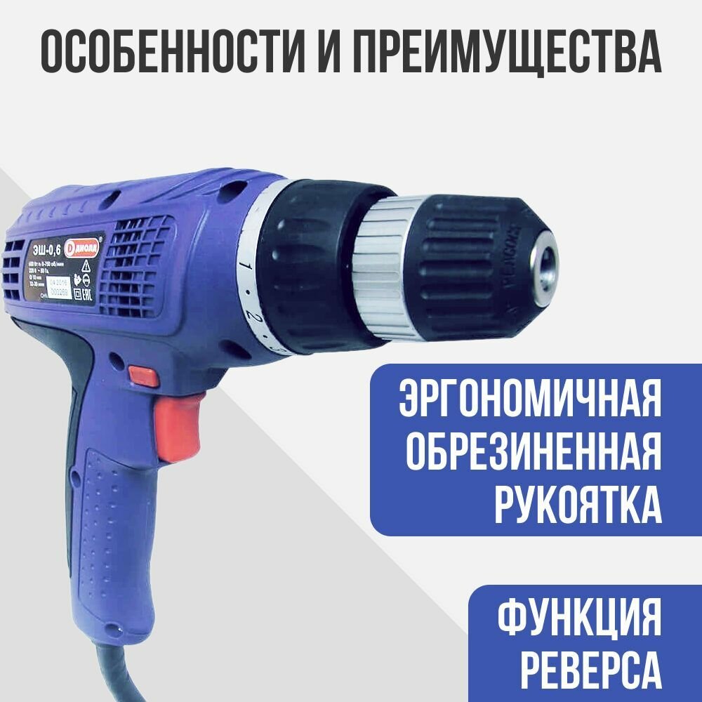 Дрель-шуруповерт диолд ЭШ-0,6, сетевой [10031090] информация: