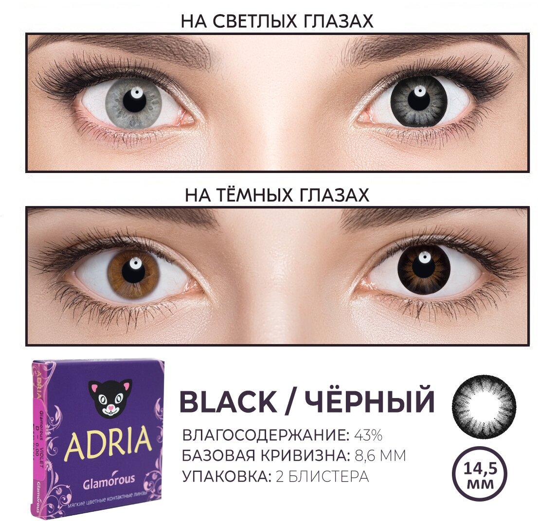 Контактные линзы ADRIA Glamorous, 2 шт., R 8,6, D 0, AХ: 14.5, black, 2 уп. информация: