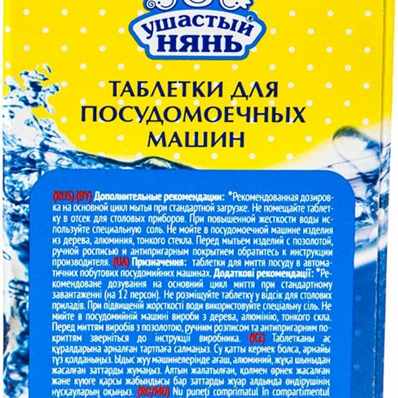 Ушастый нянь Таблетки для посудомоечных машин Ушастый нянь, 20 шт информация: