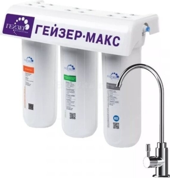 Трехступенчатая система очистки воды с краном Гейзер Макс, под мойку