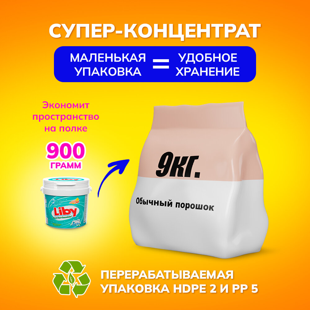 Liby Концентрированный стиральный порошок, 900 гр