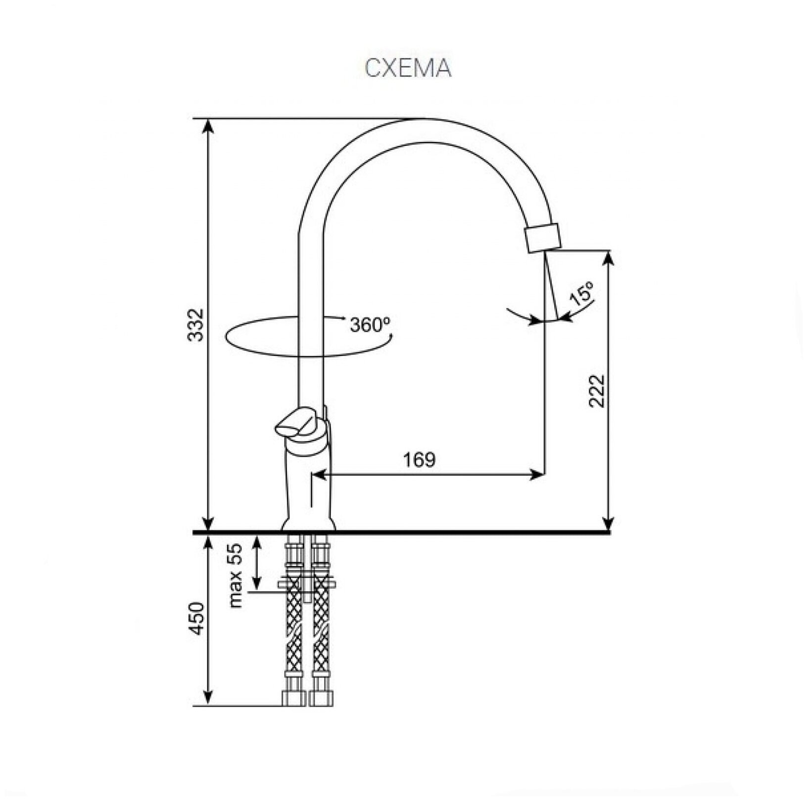 Смеситель Ulgran U-011 (308) черный, для кухонной мойки