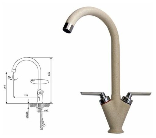 Смеситель Ulgran U-011 (302) песочный, для кухонной мойки информация: