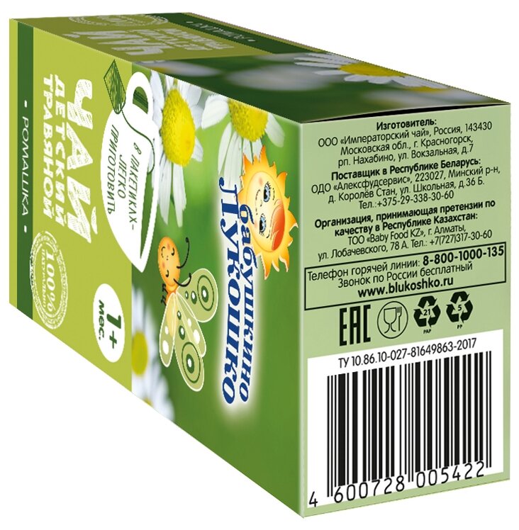 Чай Бабушкино лукошко травяной детский с ромашкой, 20 ф/п информация: