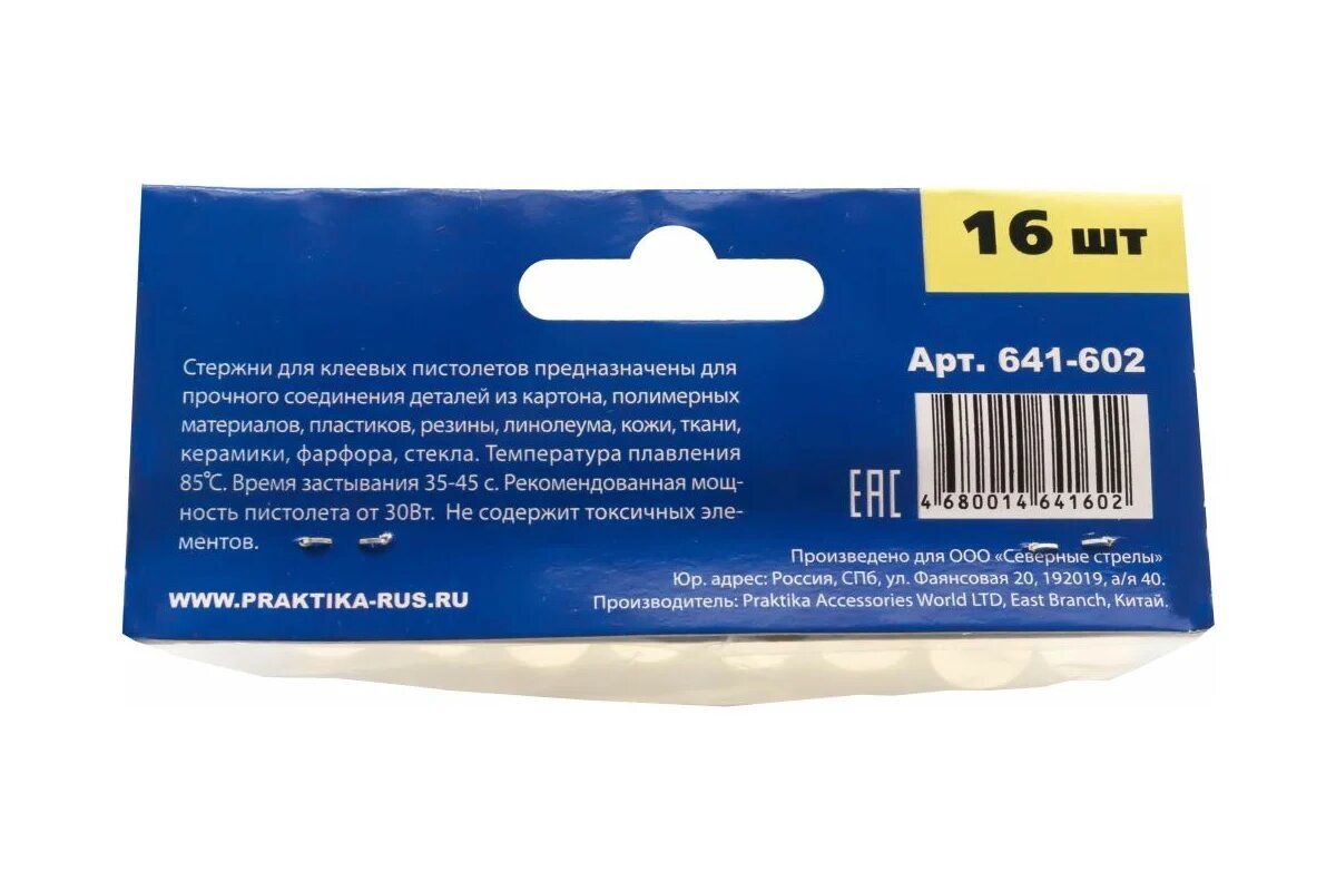 10 цен на Клей для пистолета Практика 11х200мм белый прозрачный 16шт, 641-596