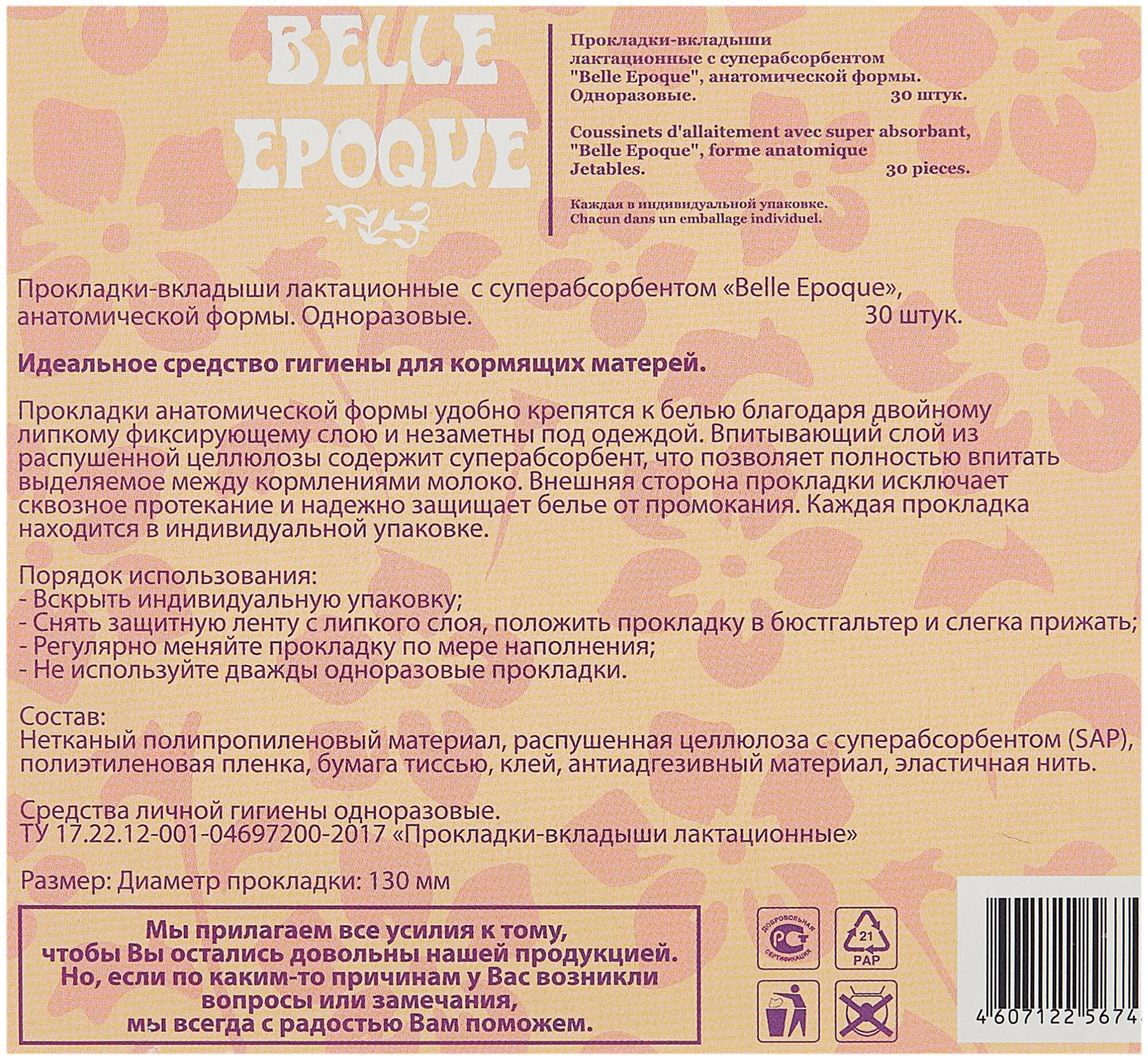 Белль эпок (Belle Epoque) Прокладки д/груди (с/адсорб) №30