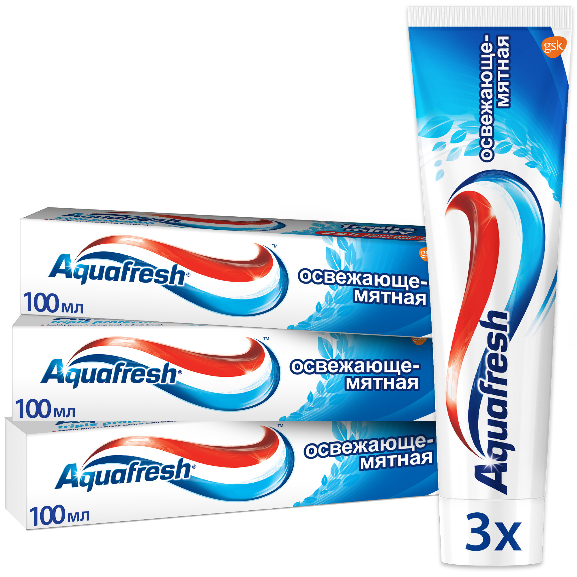 Зубная паста Aquafresh Освежающе-мятная с фтором для тройной защиты полости рта: защита от кариеса, укрепление зубов и свежесть дыхания, 100 мл 3 шт