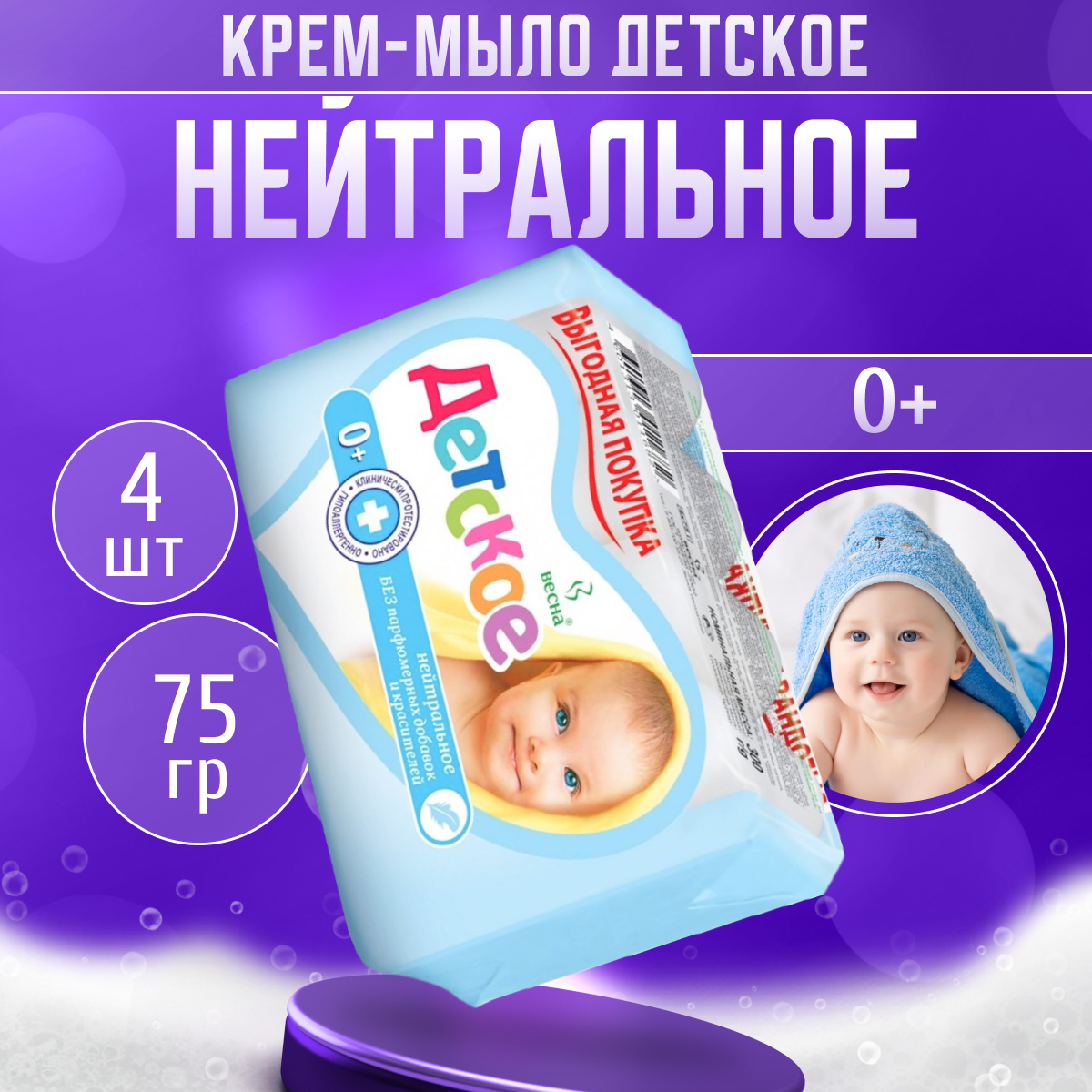 ПКК Весна Мыло детское нейтральное твердое туалетное гипоаллергенное натуральное антибактериальное 4 шт по 75г
