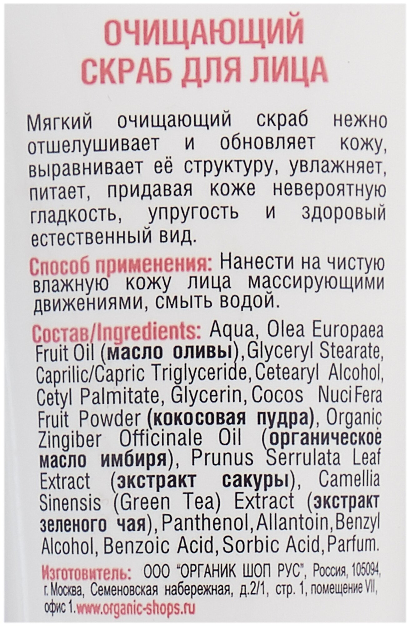 Organic Shop Скраб для лица очищающий Имбирная сакура, 75 мл 1 шт 138 ₽