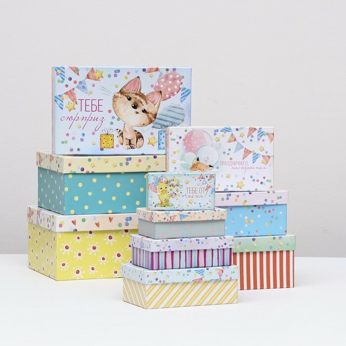 Набор коробок 10 в 1 "Праздничное настроение", 30 х 19 х 11,5 - 12 х 6,5 х 4 см 10144728 2 042 ₽