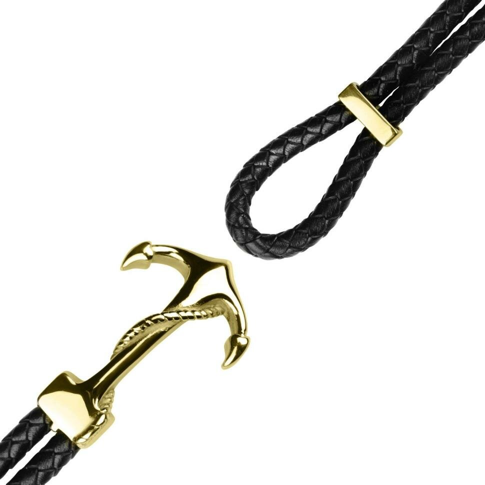 Кожаный браслет мужской Everiot SP-MJ-14014 с золотистым якорем информация: