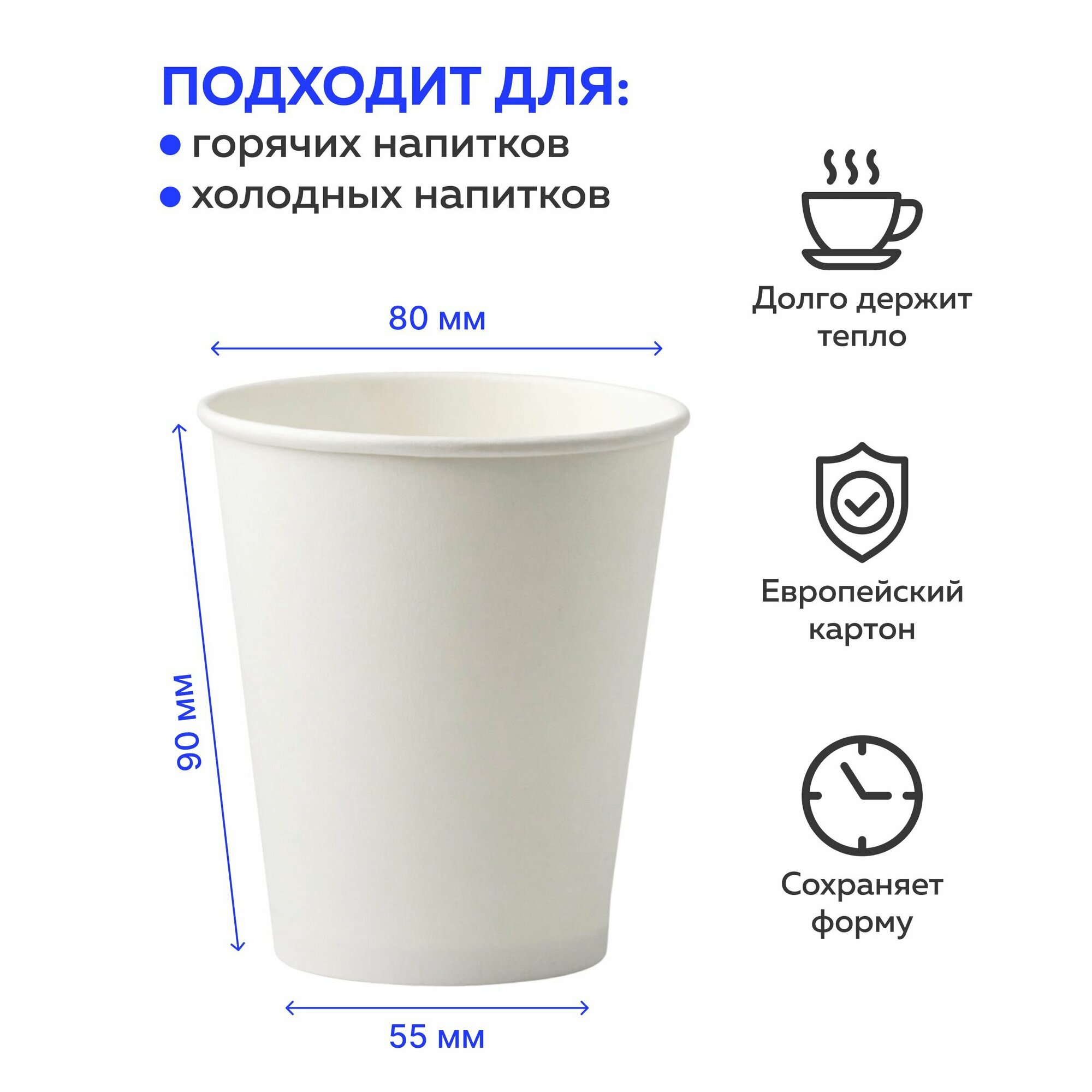 Набор бумажных стаканов, объем 250 мл, 50 шт, Белый, однослойные: для кофе, чая, холодных и горячих напитков информация: