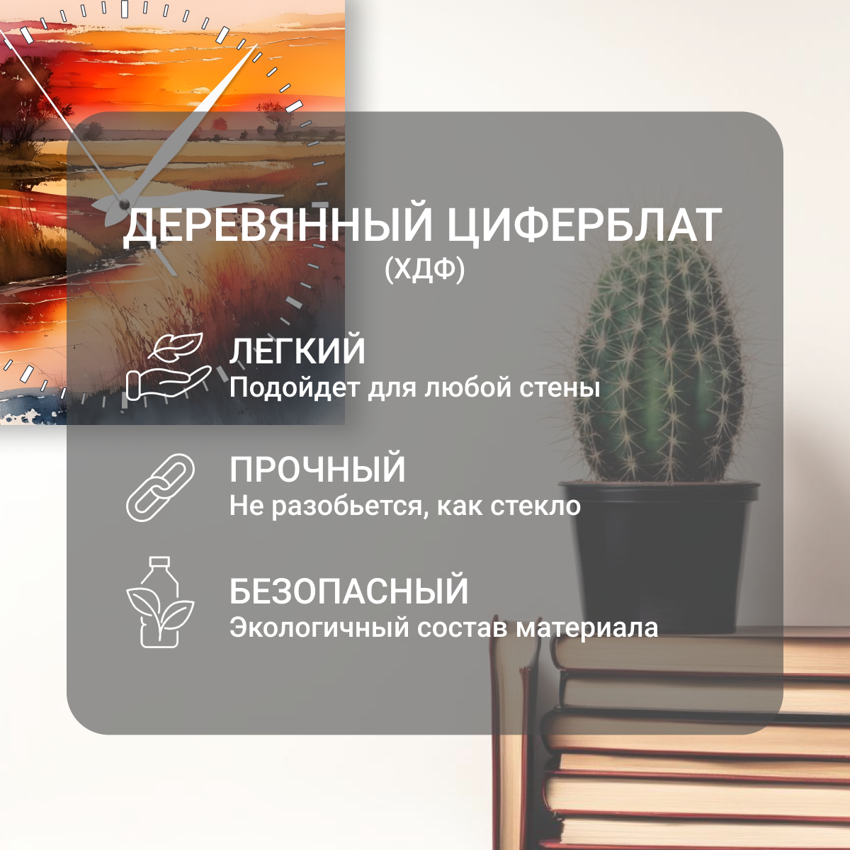Деревянные настенные часы, 28см х 28см/ Большие кварцевые бесшумные интерьерные часы с принтом/ Часы-картина на стену/, акварель река 1 информация:
