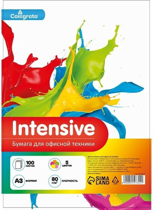 Calligrata бумага цветная А3 100л Calligrata Интенсив микс 5цв 80г/м2 информация:
