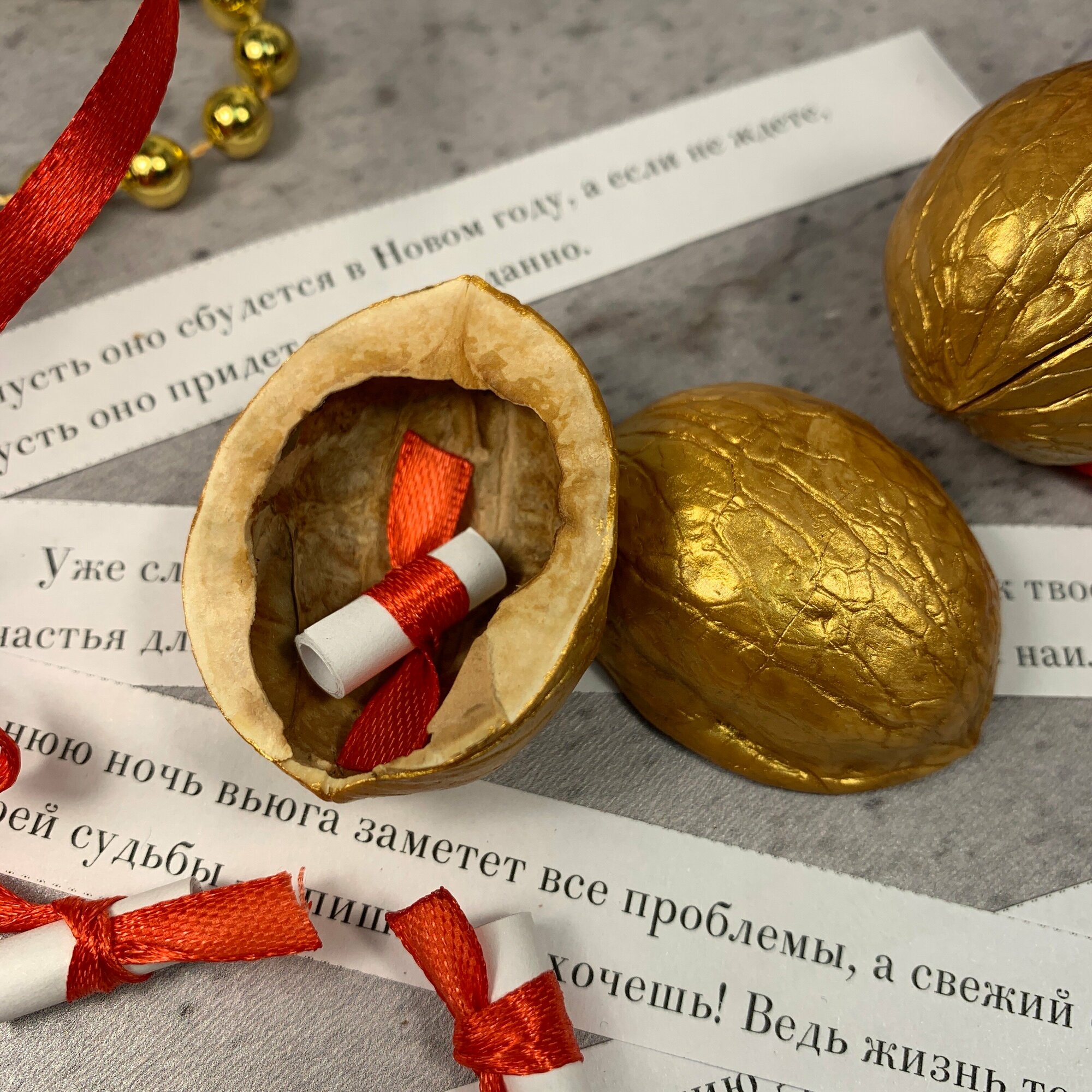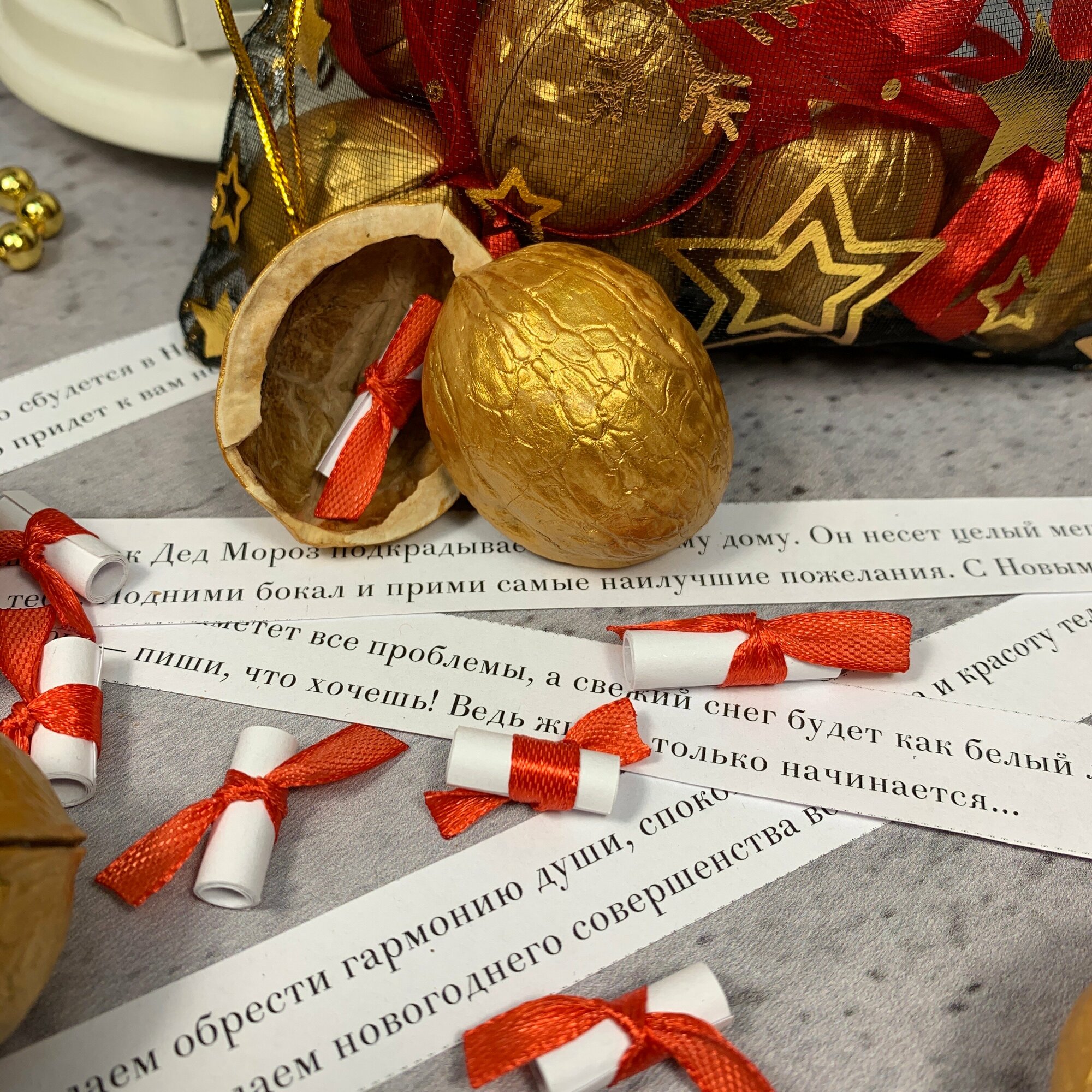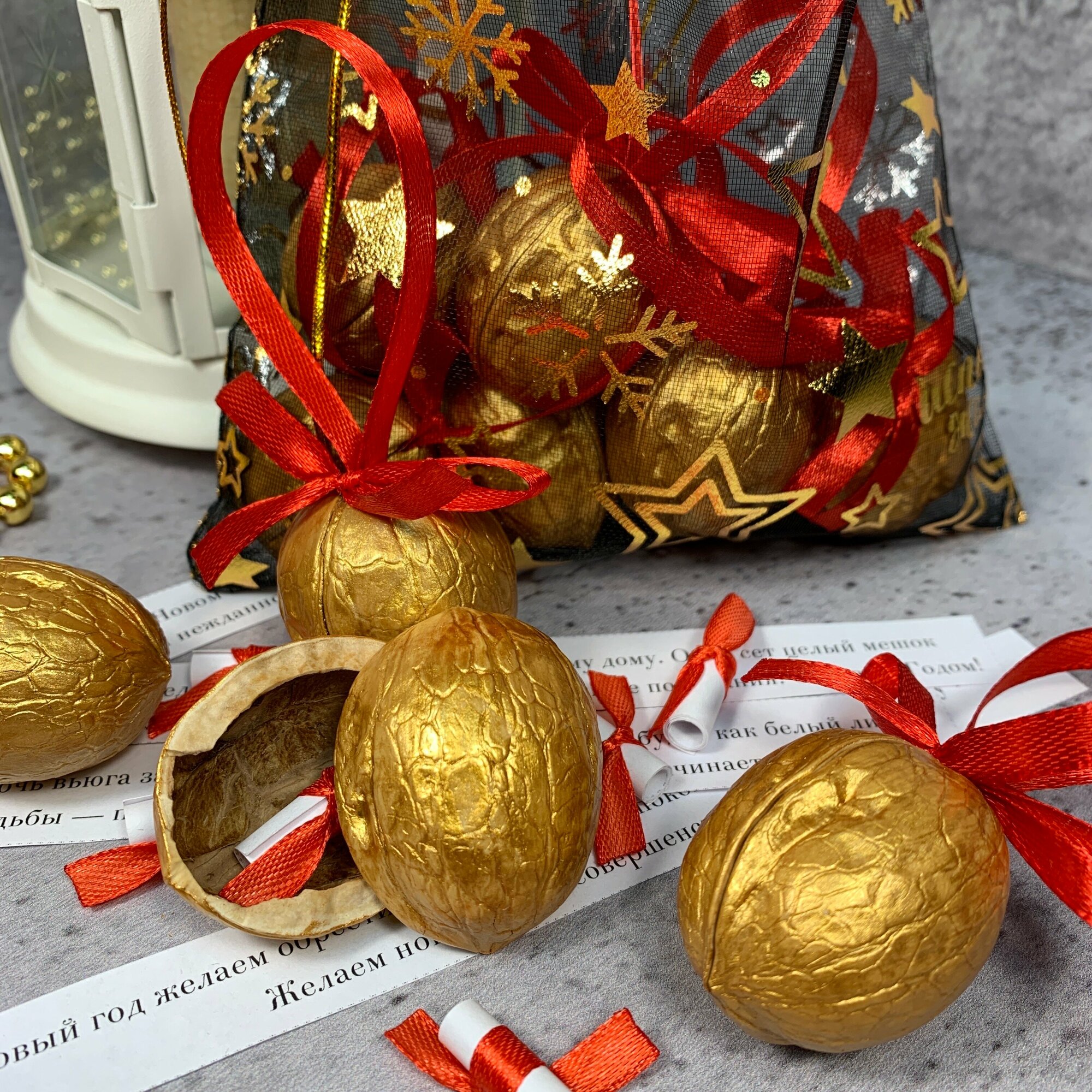Отзывы на Орешки с предсказаниями подарок на Новый год и Рождество. Подарочный набор из 10 штук в мешочке (золото с красной ленточкой)