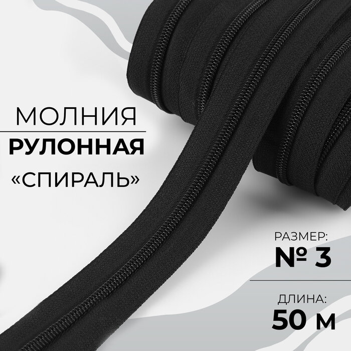 10 цен на Молния рулонная «Спираль», №3, 50 м, цвет чёрный
